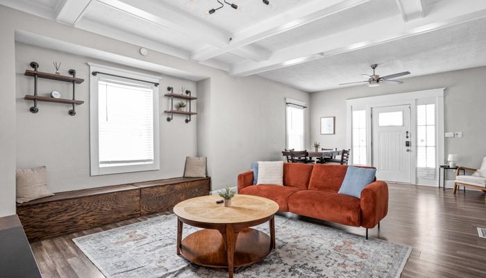 This fully updated home comfortably sleeps 8 guests across 4 bedrooms, featuring a 2 kings, queen, and a full bed. The main level boasts a cozy living room with vibrant décor, 3 bedrooms, a modern fully equipped kitchen, and a convenient laundry area. Upstairs, a spacious loft invites relaxation with a full-size couch, TV, arcade machine, and bean bag chair and additional bedroom. Enjoy the comfort of two full bathrooms, one on each level, ensuring a pleasant stay for all.