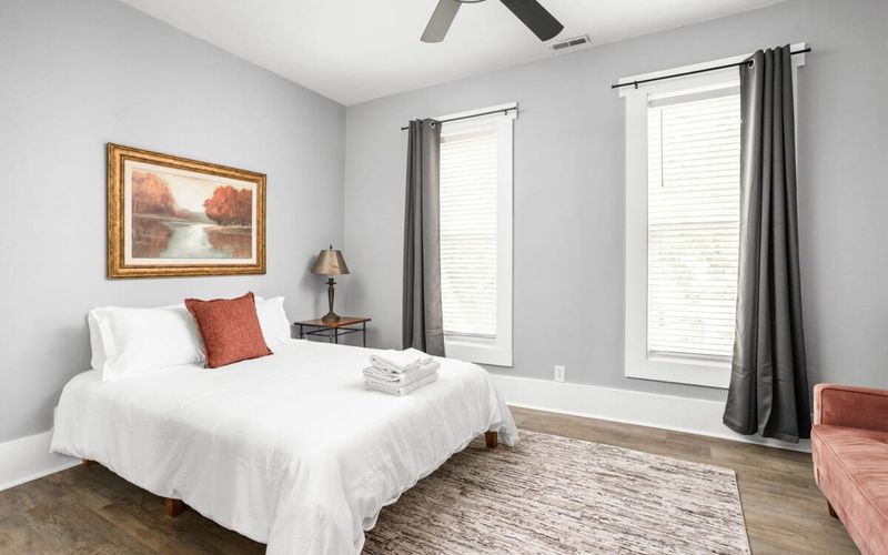 Discover the perfect blend of historic charm and modern luxury in this beautifully designed home. This 4-bedroom, 2-bathroom retreat sleeps 8 and features a spacious living area, a fully equipped chef’s kitchen, and a dedicated workspace. Premium bedding, spa-like walk-in showers, and inviting outdoor spaces provide comfort and relaxation. Just minutes from downtown attractions, this elegant home is ideal for both leisure and business travelers.