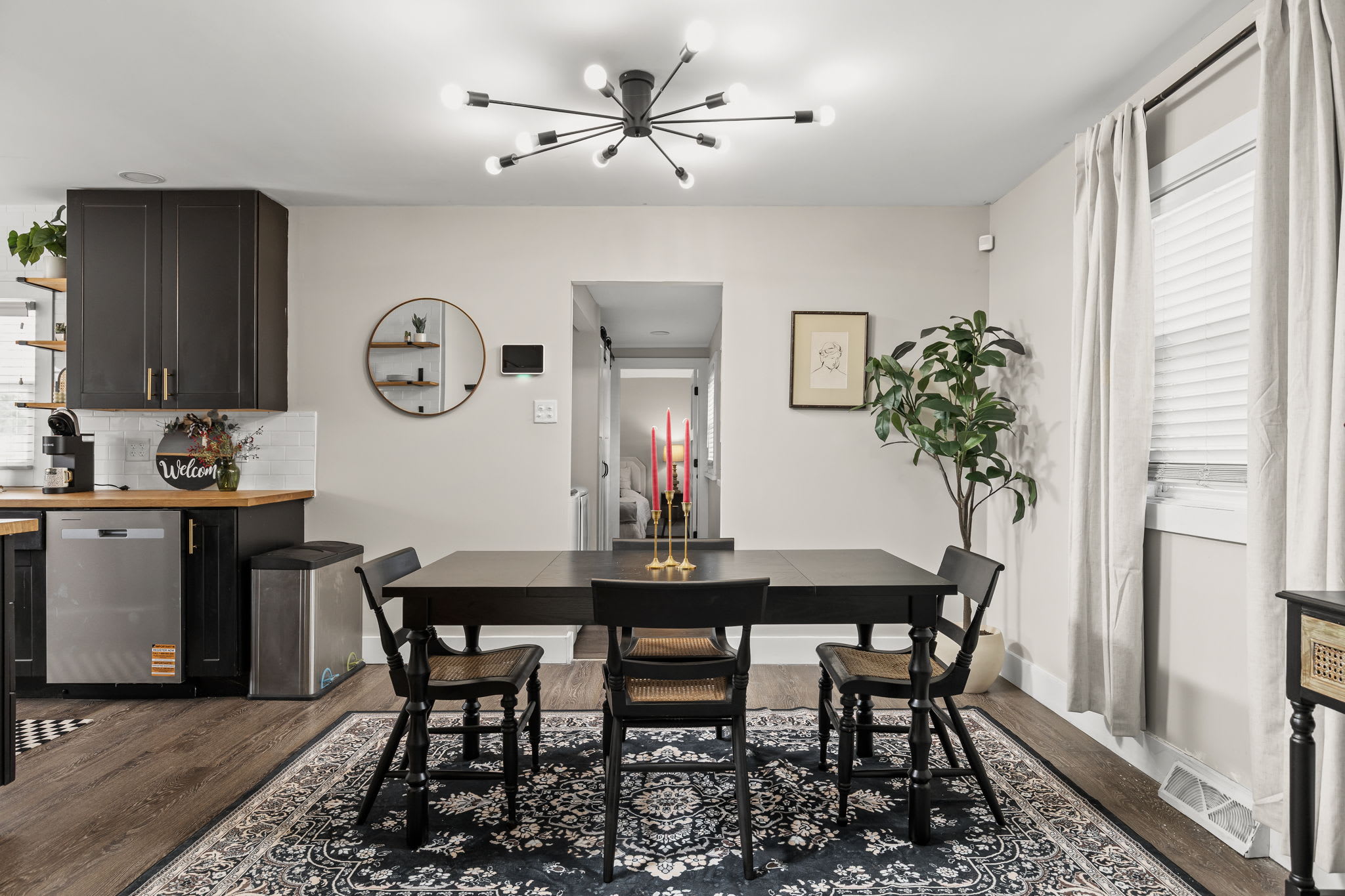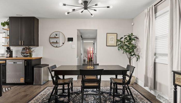 – Dining area with a chic table seating for 4