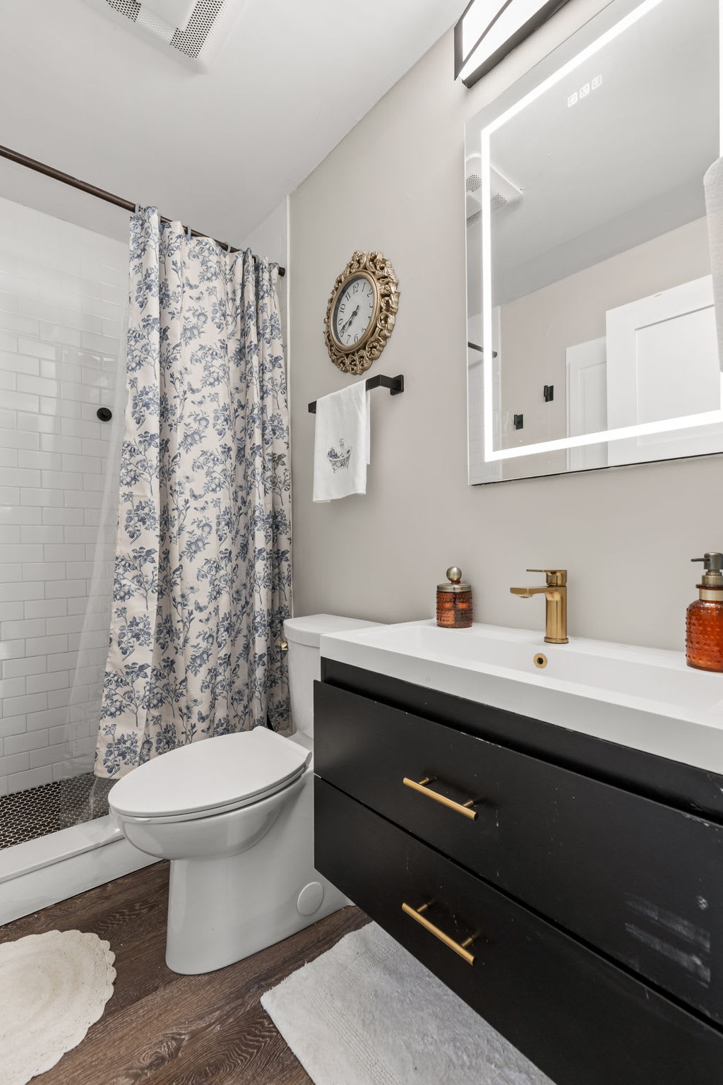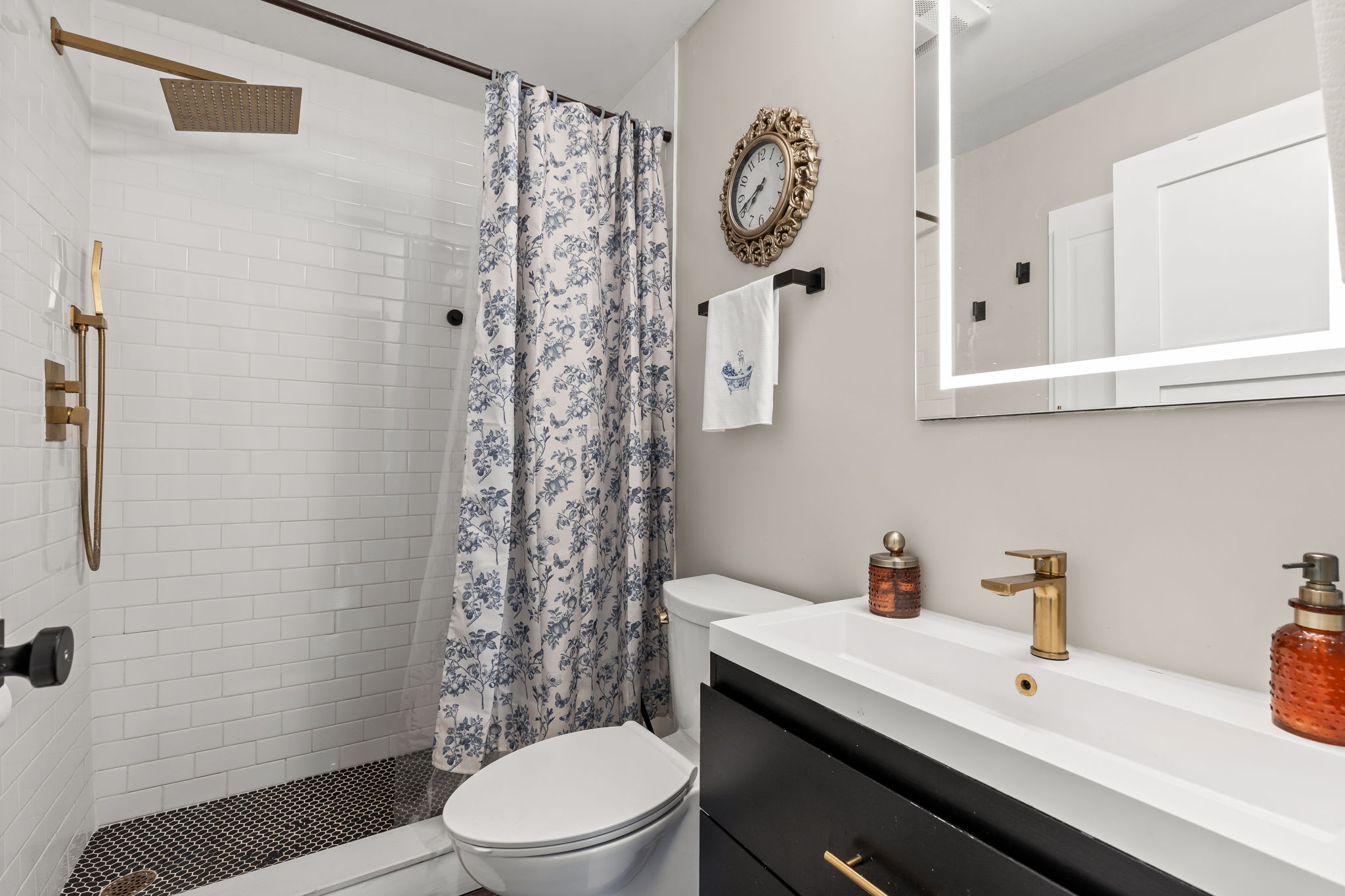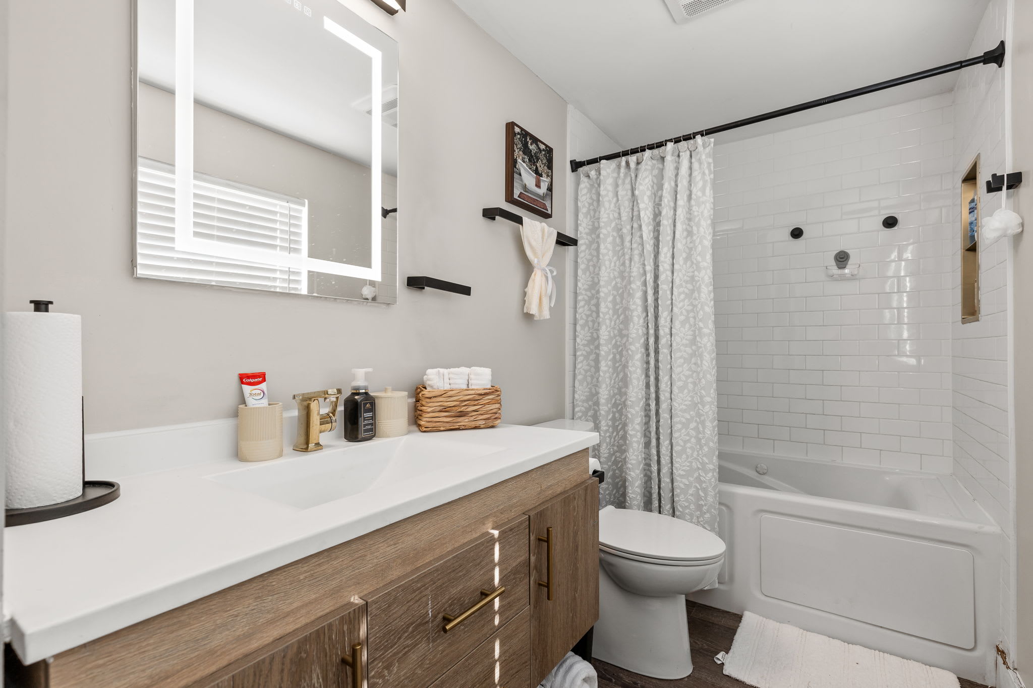 🚿 Bathroom 2 – Shower/tub combo, modern fixtures, lighted vanity mirror