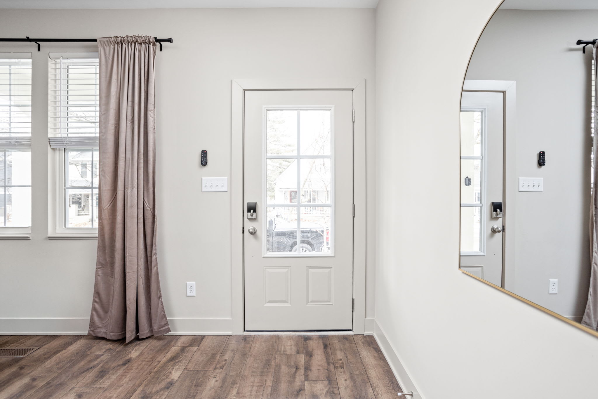 This property is equipped with exterior security cameras located at the main entrance and back entrance.These are motion activated and can be remotely monitored to ensure a secure and comfortable stay. Additionally, we have a Minut sensor inside the home in the main living area that tracks sound levels and smoke detection but does not record audio. Tampering with cameras or sensor will result in additional fees.