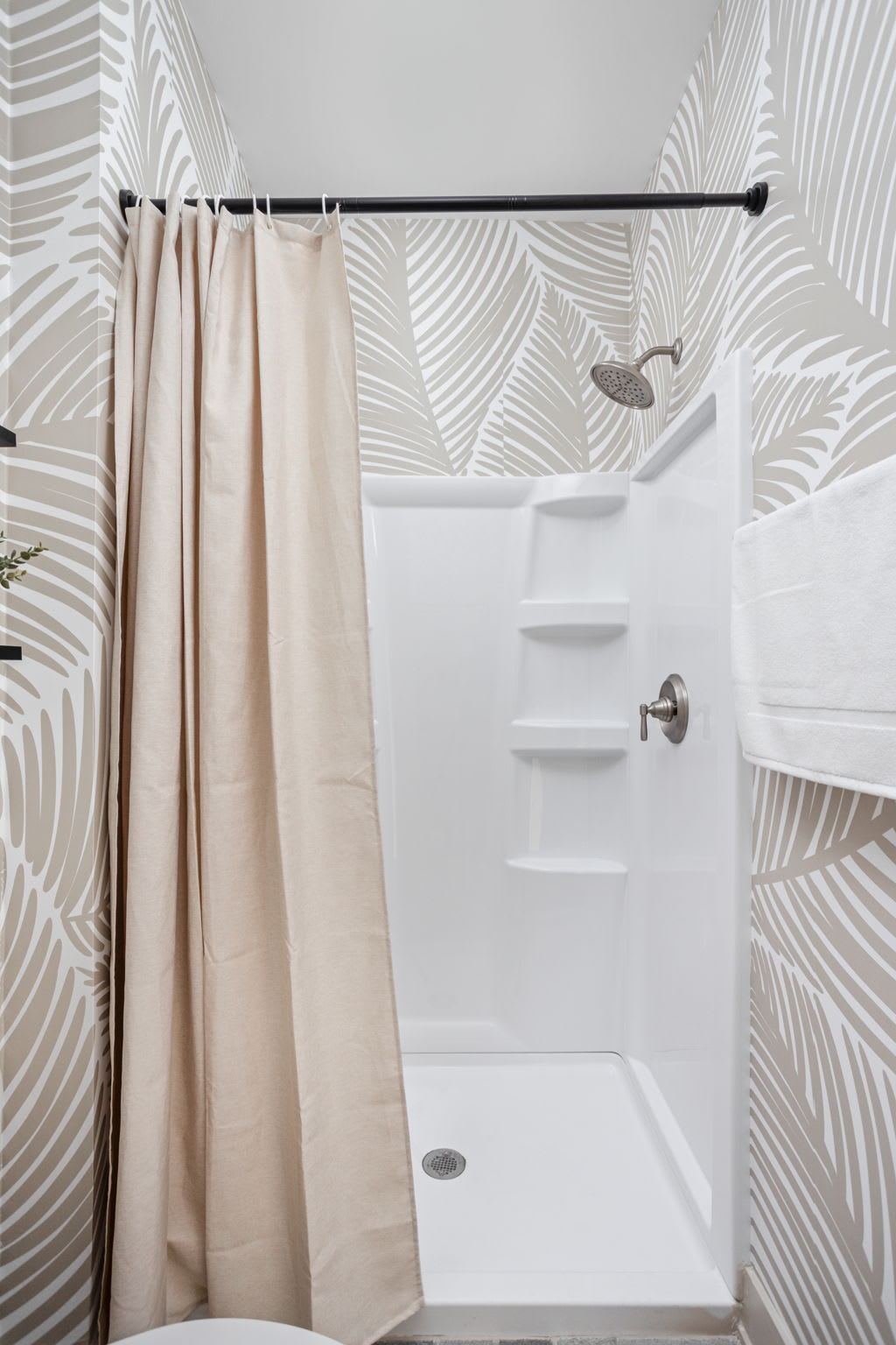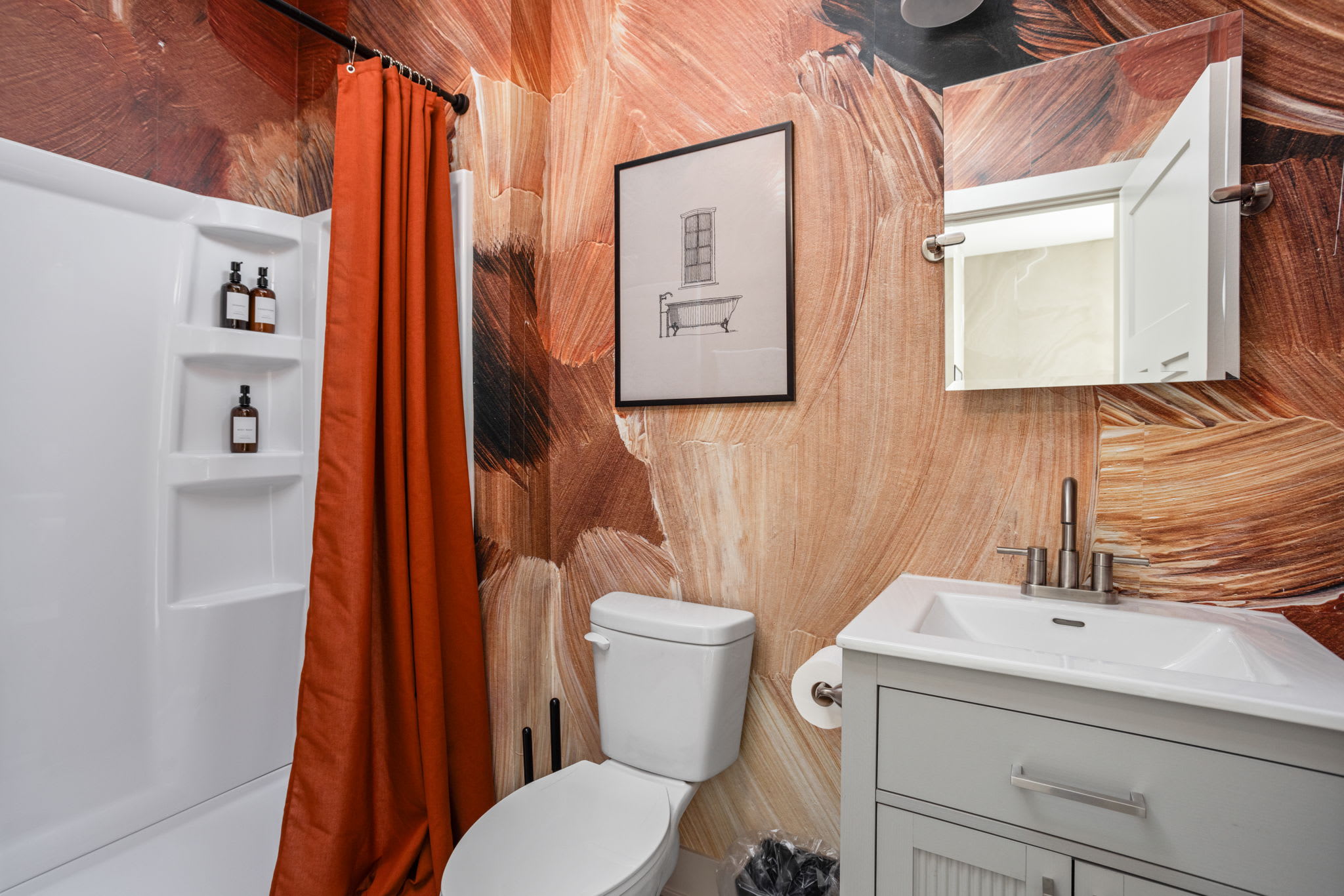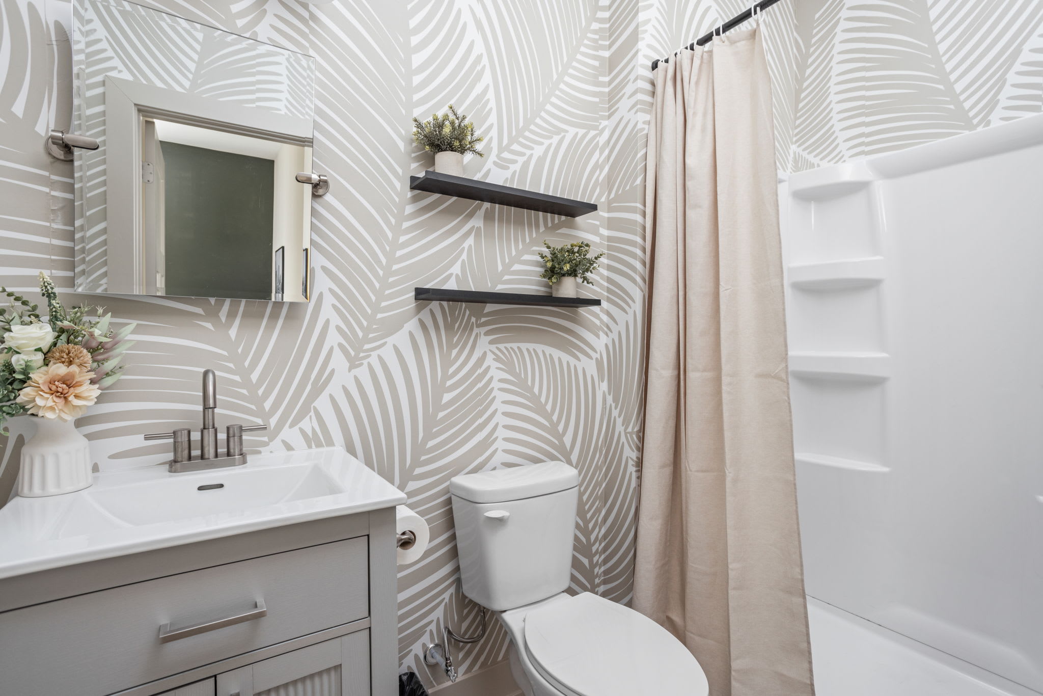 🚿 Bathroom 1 – Just off the main level bedroom, vanity, full size walk in shower