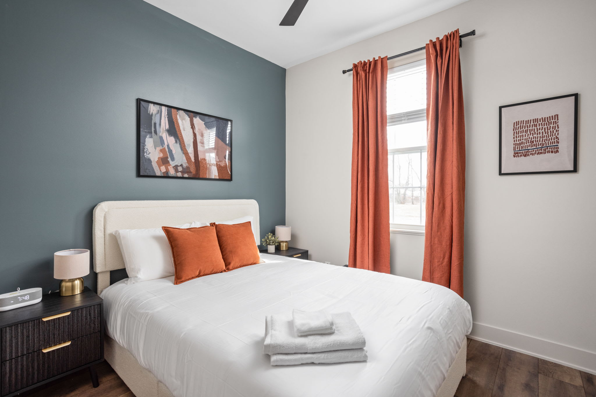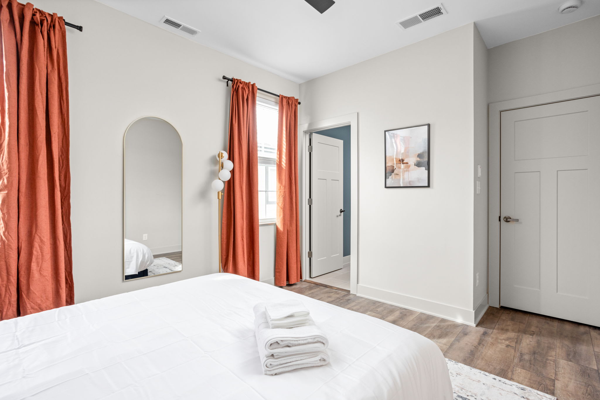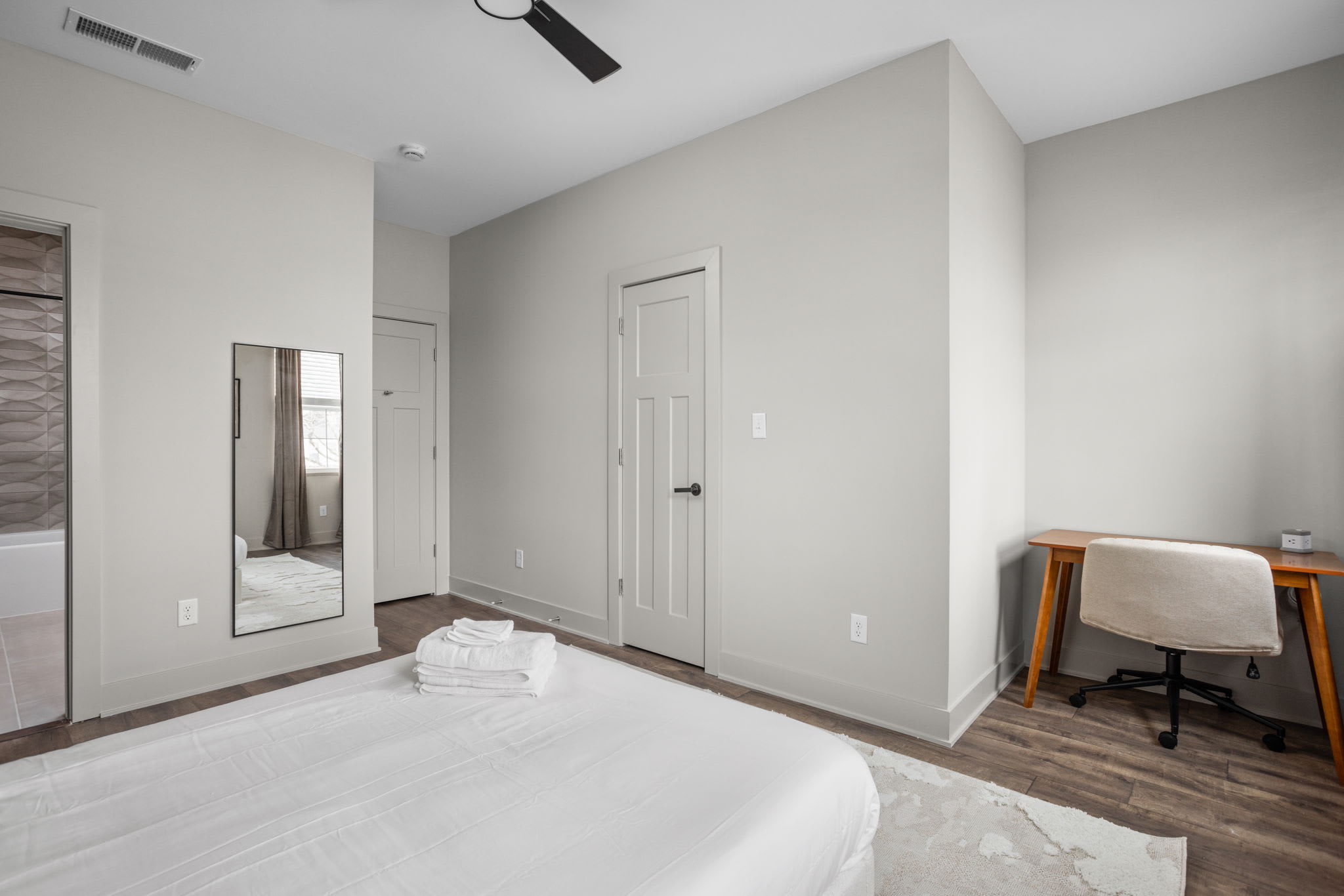 ⭐ Bedroom 1 – On main level, full bed, premium linens, and bathroom just off the bedroom!