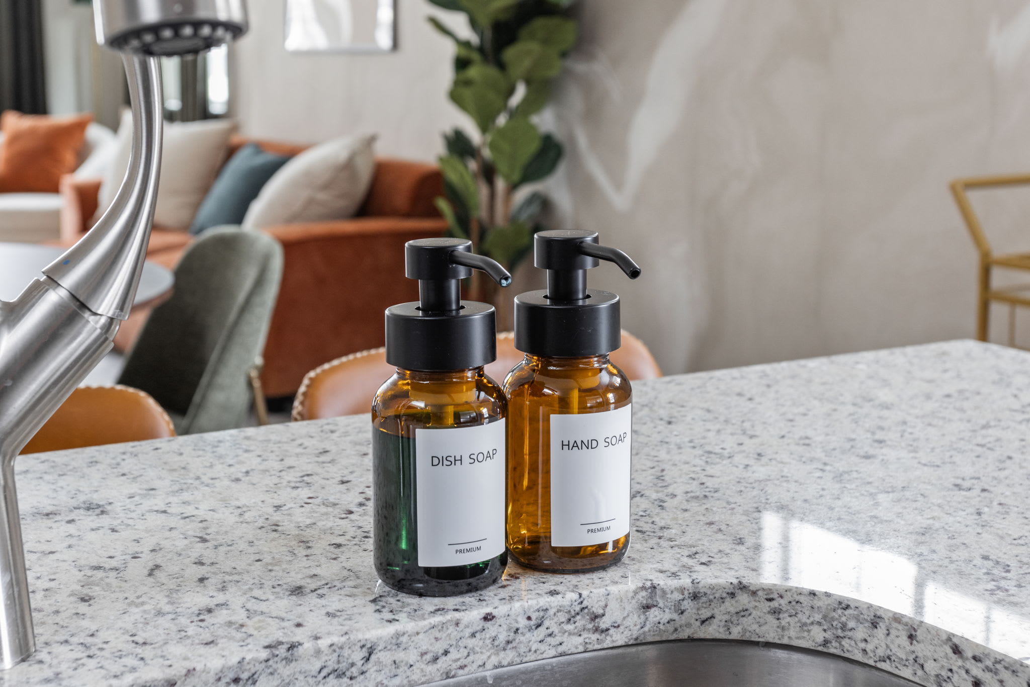 – Premium and organic hand soaps, shampoo, conditioner, and body wash